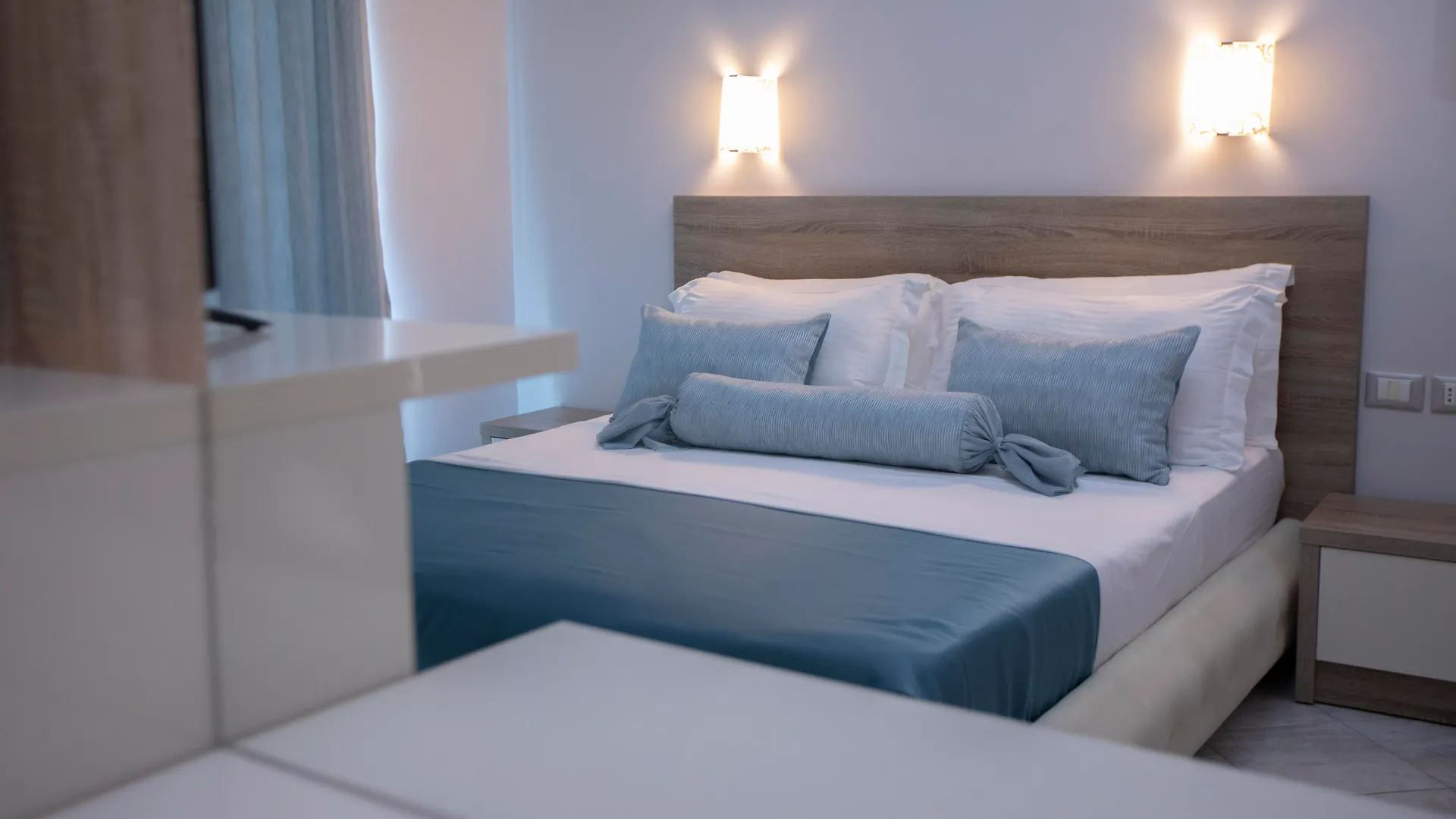 Bestaande uit een balkon en een zitruimte, zijn de kamers van de accommodatie in Sarandë uitgerust met een flatscreen TV met satellietzenders. Voor het comfort van de gasten zijn er airconditioning. Extra's zijn onder andere een bidet, een apart toilet en een douche, evenals een haardroger en handdoeken in de badkamer. Sommige units bieden uitzicht op de Ionische Zee.